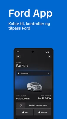 Opplev en ny æra av tilkoblet kjøring med Ford App, din ultimate følgesvenn for en smartere og mer integrert bilopplevelse. Denne intuitive applikasjonen plasserer full kontroll over din Ford rett i lommen din. Fra fjernstyring av essensielle funksjoner som motorstart, låsing og opplåsing av dører, til å ha en detaljert oversikt over bilens drivstoffnivå, elektrisk rekkevidde og nøkkelstatistikker – alt er sømløst samlet. Du kan til og med bruke smarttelefonen som din digitale nøkkel for en moderne og problemfri tilgang.