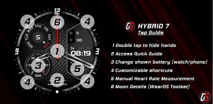 Maksimer din produktivitet og hold deg informert med hele fire redigerbare komplikasjoner, strategisk plassert for rask tilgang til det som betyr mest for deg. Følg med på daglige skritt for å nå dine aktivitetsmål, overvåk hjertefrekvensen din for å holde pulsen på helsen, og ha alltid dagens dato for hånden. For de som verdsetter himmellegemenes sykluser, inkluderer urskiven også en detaljert månefasevisning. Ved et enkelt trykk kan denne funksjonen til og med utvides til å vise dypere månedetaljer via WearOS Toolset, forutsatt at den er installert. I tillegg får du fire praktiske app-snarveier, slik at favorittappene dine alltid er kun et trykk unna, noe som forenkler hverdagen din betraktelig.