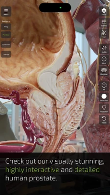 Med INSIGHT PROSTATE får du tilgang til enestående visuell og interaktiv læring. Gjennom intuitiv bruk kan du enkelt skanne omgivelsene dine og plassere en tredimensjonal modell av prostata ved hjelp av banebrytende Augmented Reality-teknologi. Vår virtuelle assistent, ANI, vil deretter lede deg gjennom de ulike tilstandene prostata kan befinne seg i. Du kan dykke dypt inn i prostatas makroskopiske og mikroskopiske anatomi, og utforske strukturer med enestående detaljrikdom. Appen visualiserer ikke bare den normale anatomien, men også patologiske forandringer, og gjør dem forståelige for å tette kunnskapshullet som ofte eksisterer rundt disse sykdommene.