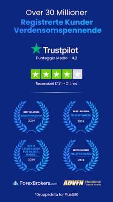 Opplev finansmarkedene som aldri før med Plus500, din pålitelige portal til en verden av investeringsmuligheter. Enten du ønsker å eie deler av dine favorittselskaper direkte eller utforske dynamikken i CFD-handel på tvers av et enestående utvalg av aktiva, tilbyr Plus500 en intuitiv og kraftfull plattform. Bli en del av et globalt fellesskap av investorer og tradere som utnytter Plus500s brukervennlige grensesnitt for å navigere i aksjer, valuta, indekser, råvarer, kryptovalutaer og ETF-er fra verdens ledende børser.