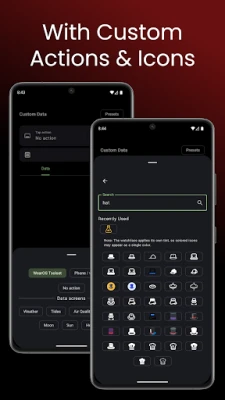 Med den unike "Ultimate" Custom Complication fra WearOS Toolset kan du si farvel til kompromisser. Her kan du sømløst kombinere nesten hvilken som helst verdi – fra sanntidstemperatur og egendefinert tekst til tidevannshøyde – alt elegant presentert i én og samme datavisning. Gi liv til klokken din ved å tilpasse trykkhandlingen: start en spesifikk app, en snarvei, eller til og med en konkret app-aktivitet direkte fra urskiven. Et enormt bibliotek av ikoner fra Iconify gir deg tusenvis av valg for å matche din personlige stil perfekt. I tillegg forbedrer den kraftfulle telefonappen din opplevelse, enten den brukes alene eller som et styringssenter for klokken. Administrer enkelt alle innstillinger, komplikasjoner og fliser, og dra nytte av den nye snarveisredigereren som muliggjør dypere integrasjon med app-aktiviteter, alt optimalisert for alle enheter, inkludert foldbare telefoner.